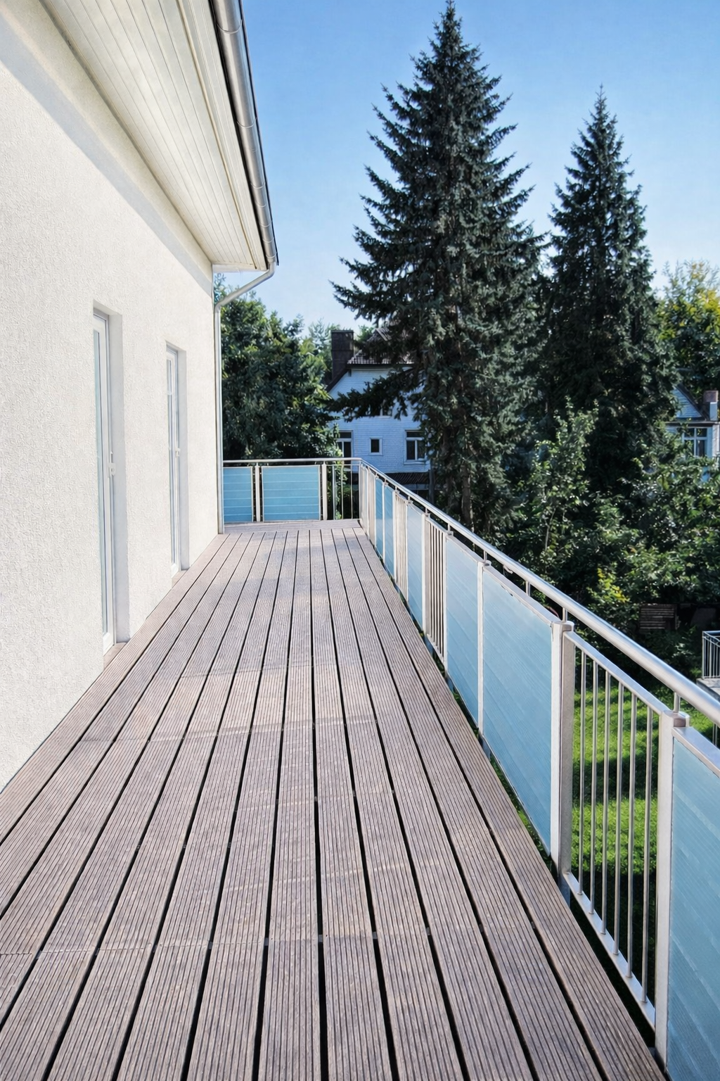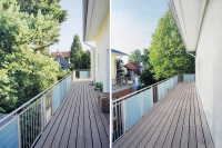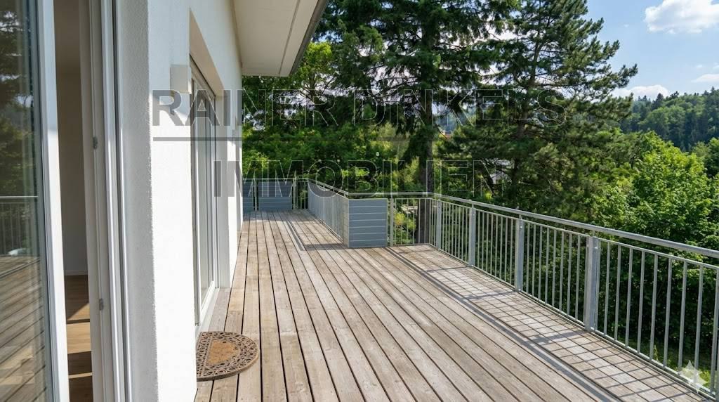 Außenbereich: Eine U- förmige, an drei Seiten umlaufende Dachterrasse (Süd-/Ost-/West-Ausrichtung) bietet zu jeder Tageszeit den perfekten Sonnenplatz und einen unverbaubaren Blick ins Grüne.