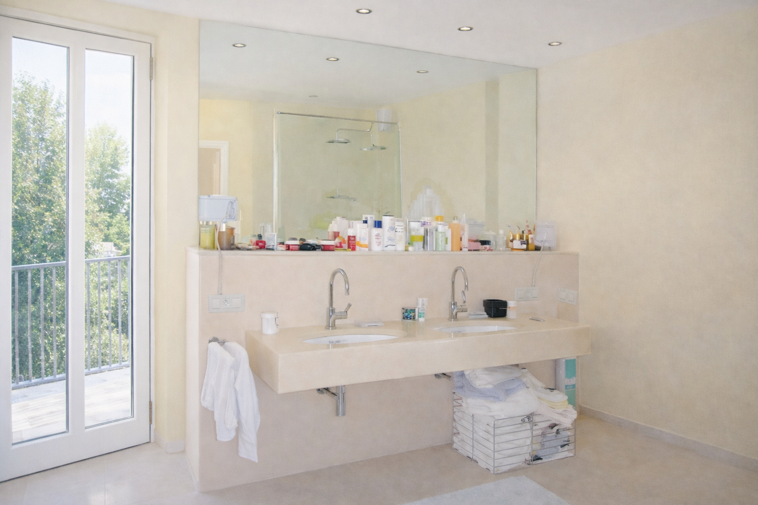 Master-Bereich: Das Hauptbadezimmer ist als Wellness-Oase mit Limestone-Fliesen gestaltet.