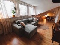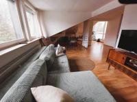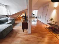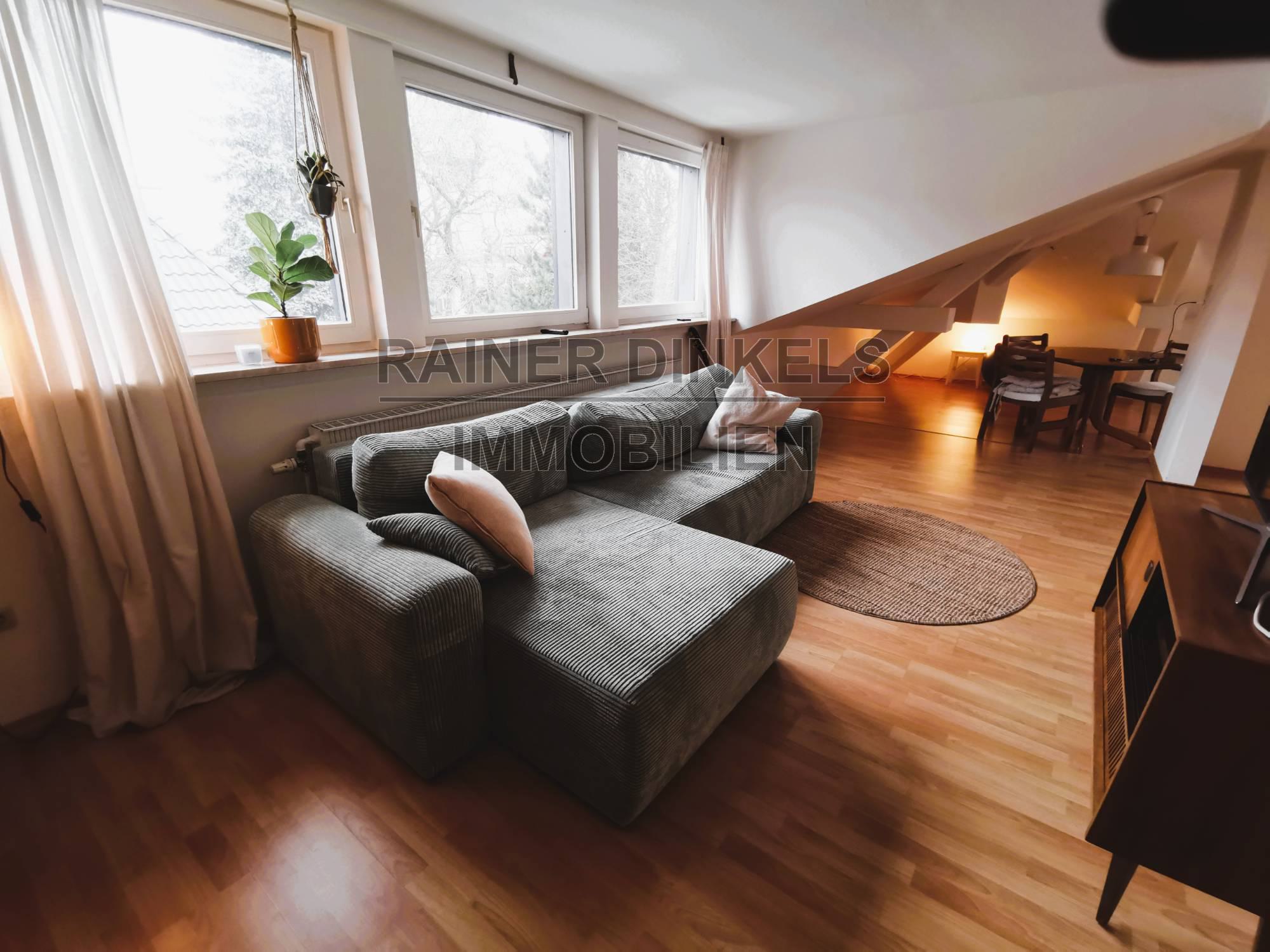 Ergänzt wird die Wohnung durch ein separates Schlafzimmer, eine Küche sowie ein modernes Duschbad. Die Dachgeschosslage sorgt für eine besonders ruhige und helle Wohnatmosphäre.